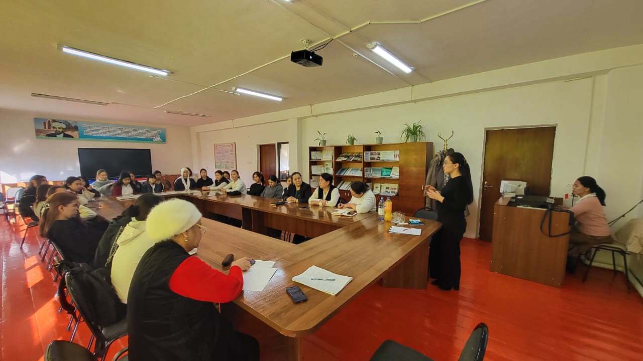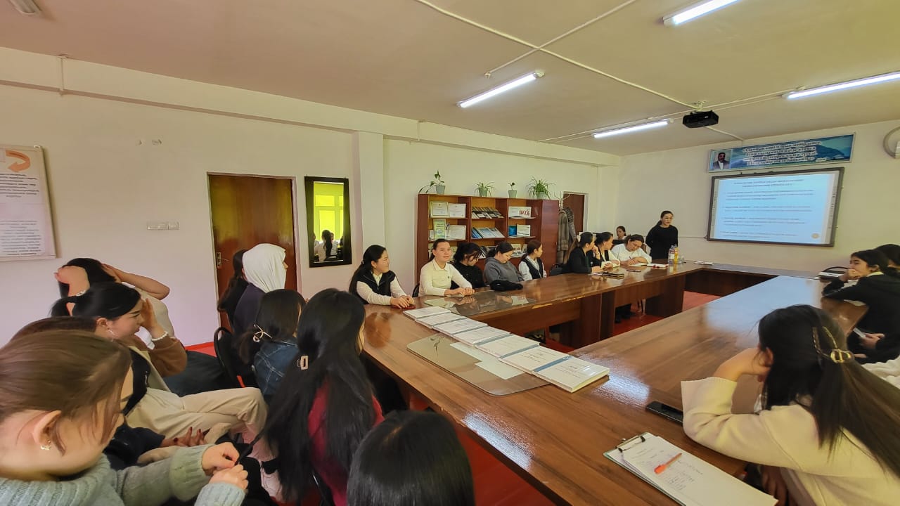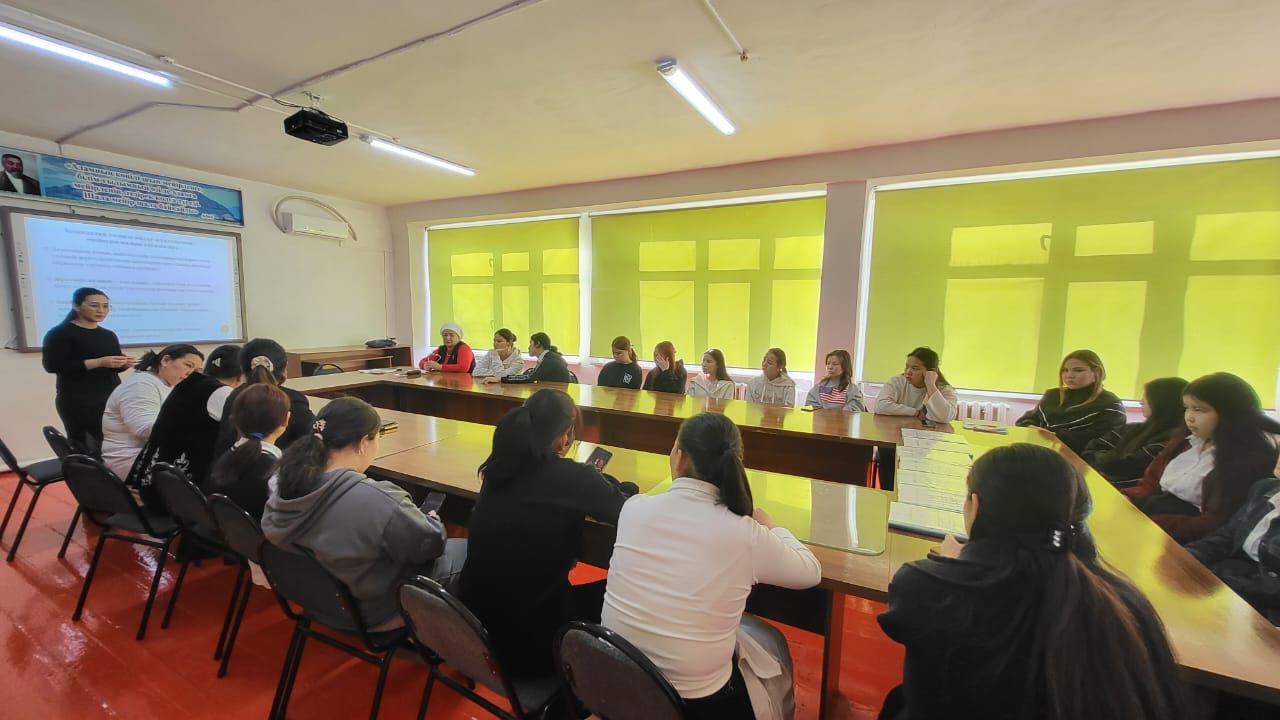 Жиналысқа келген мамандар «Өмір ырғағы» ҚБ төрайымы Алшериева Жания Сүйеғалиқызы, Орталық емханасының балалар гинекологы Еден Жазира Дәрітайқызы және психолог маманы Тажиева Динара Мерейқызы өз салаларына қатысты маңызды ақпараттарды студенттерге қарапайым әрі түсінікті тілде жеткізді. Жиналыс барысында видео-ролик көрсетіліп, студент қыздардан анонимді сауалнама алынды.